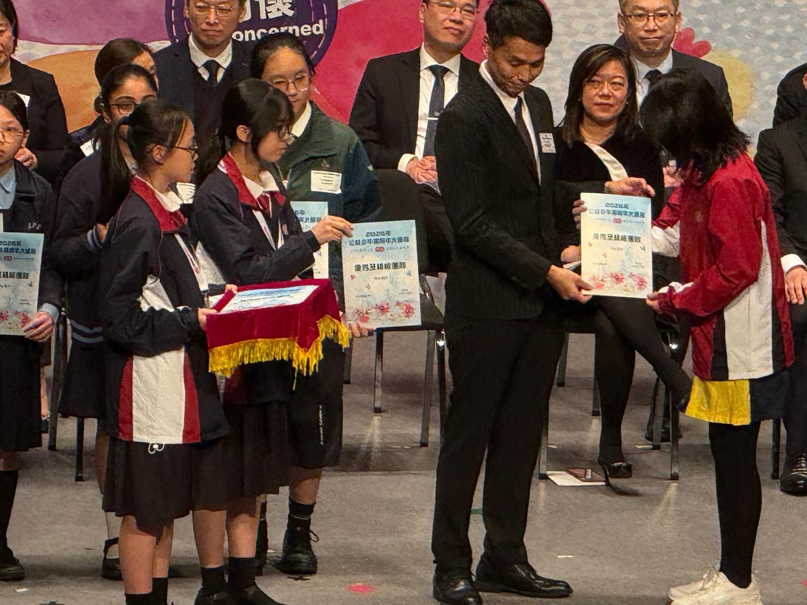 當天,陳梓澄同學代表學校上台領取了 「積極團隊獎」及 「優秀團隊獎」兩項大獎!🏅 這份榮譽不僅是對同學們過去一年熱心服務、關愛社區的肯定,更是師生們共同努力的成果。