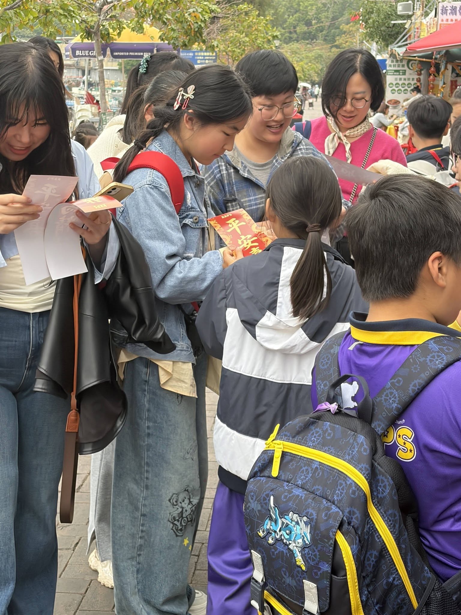 錦江小學的學生們今日完成期末評估後,並沒有馬上休息,而是立刻帶著滿心暖意走進社區,為長洲街坊送上本校設計的賀年揮春。這份小小的禮物,承載著孩子們真摯的祝福:願大家新年快樂、龍馬精神、事事如意、一帆風順,更願主恩常滿,平安喜樂伴隨每一天。