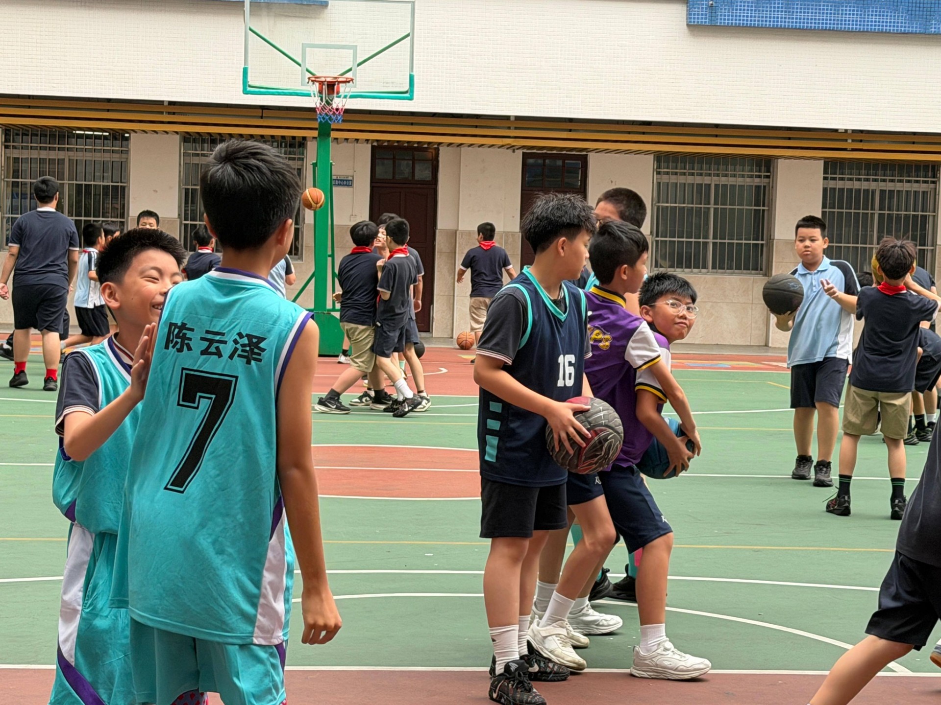 體育課上進行了熱血沸騰的籃球友誼賽;英語課堂中一同學習、遊戲;心理素質課堂上也收穫滿滿。