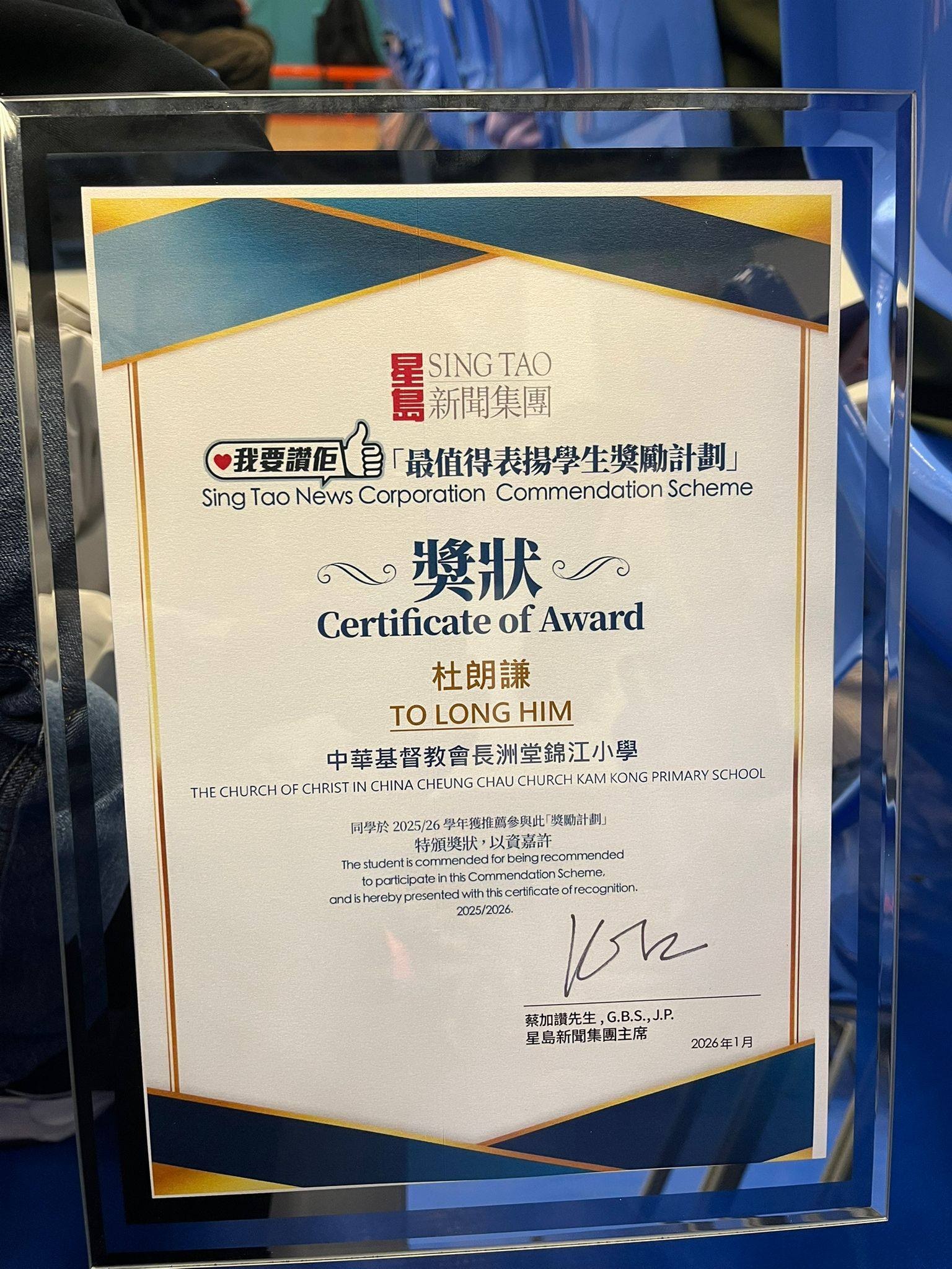 「最值得表揚學生獎勵計劃」