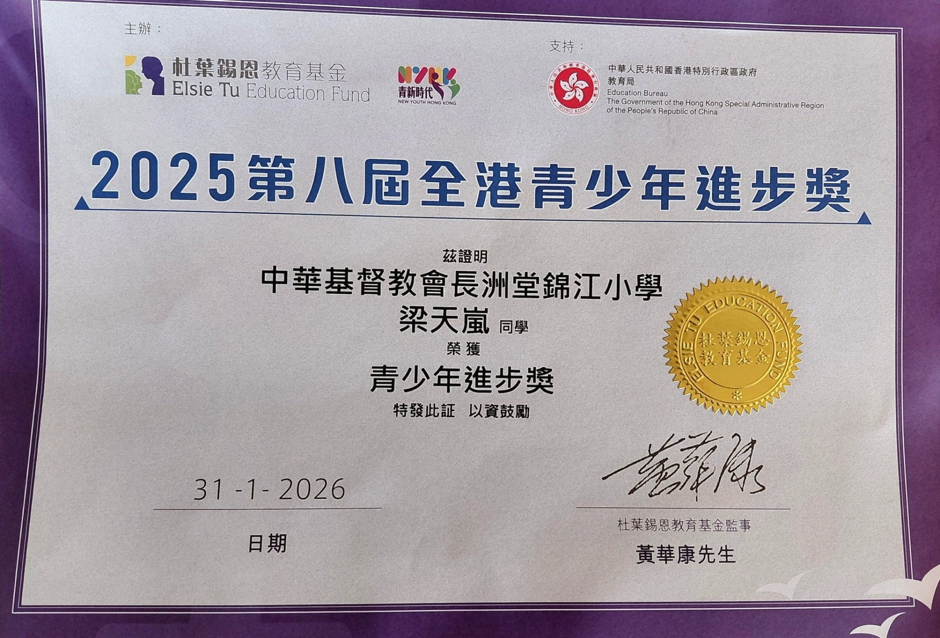 「2025第八屆全港青少年進步獎」