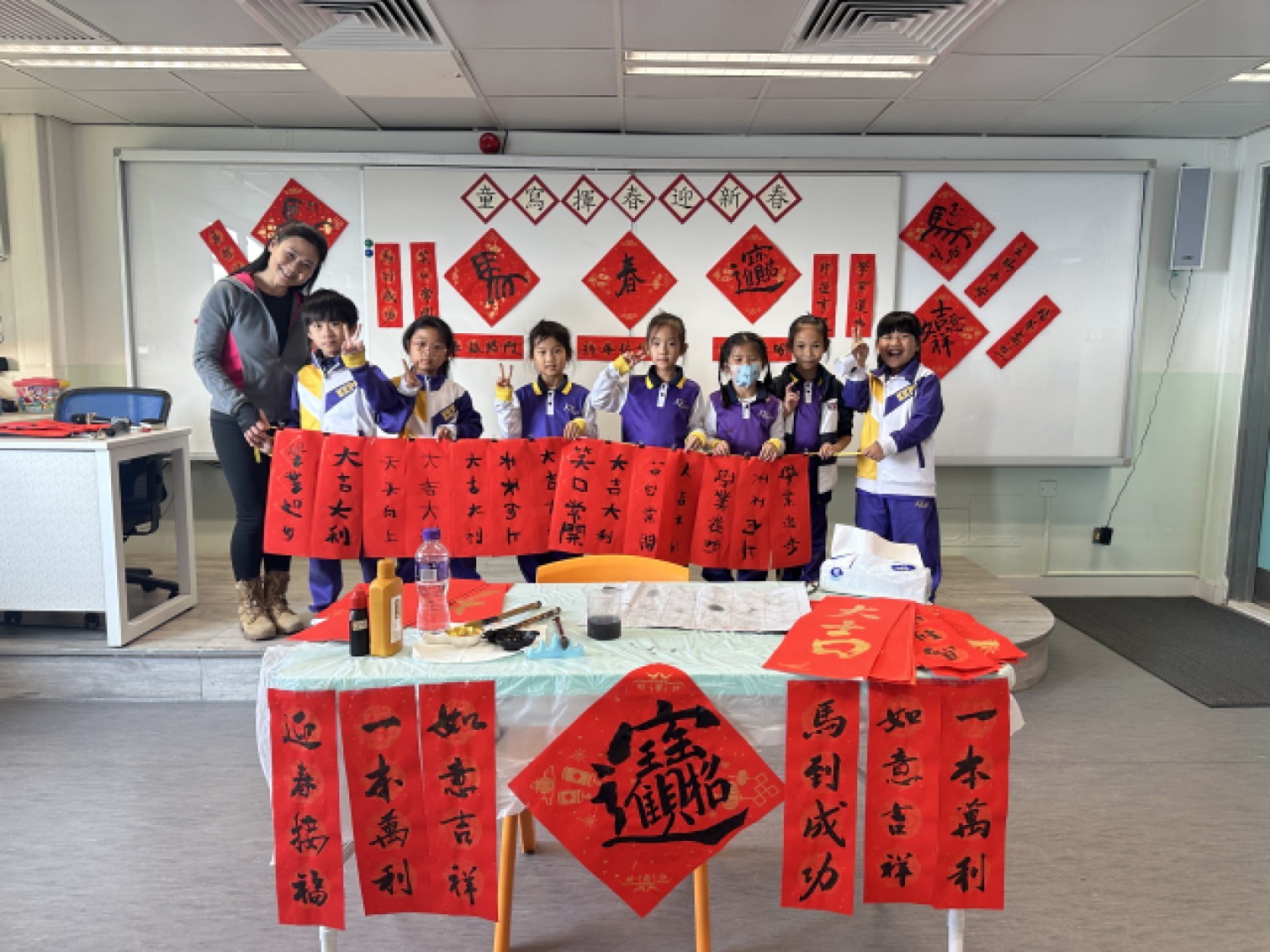 孩子們捧著自己親手寫的揮春,臉上露出自豪的笑容,這就是最棒的新年禮物了!🧧🧧 感謝每一位老師、家長和同學的熱情參與,讓我們一起用滿滿的墨香迎接充滿活力的馬年。🏇🌈 祝大家在新的一年裡,都能龍馬精神、事事順意、馬到功成!🎉🎊🎈