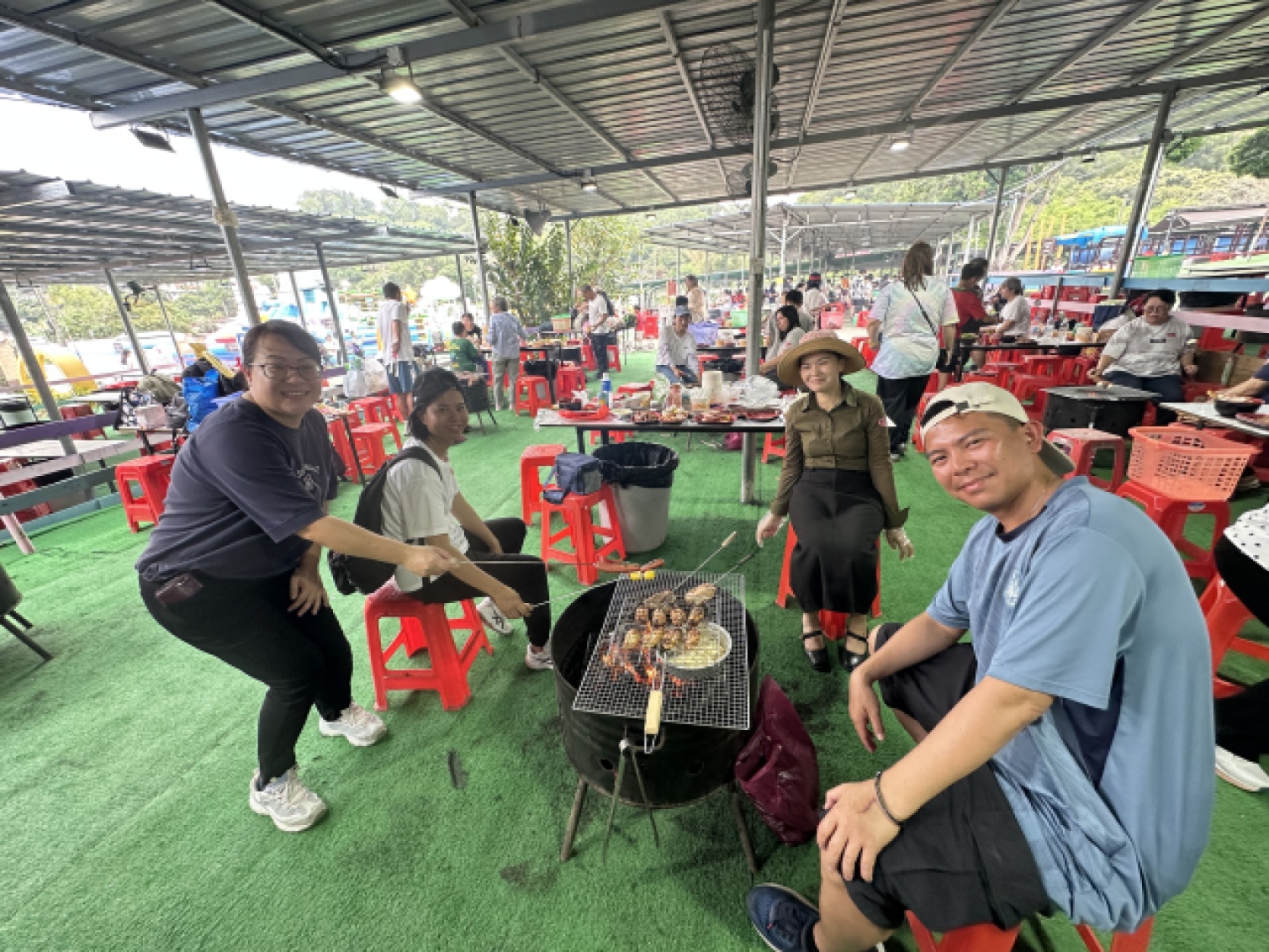 一到達農莊,小朋友們見到色彩繽紛的巨型吹氣彈床便立即興奮莫名,紛紛在上面盡情跳躍、攀爬和滑行,歡笑聲此起彼落,絕對是當天的「放電」勝地!🏰🏃♂️ 在孩子們盡情玩耍的同時,家長們則齊集燒烤場,分工合作展開一場熱鬧的炭火 BBQ。😋 家長們化身燒烤達人純熟地開爐,分工合作打點食材,大家圍爐而坐,一邊品嚐香噴噴的金黃雞翼,一邊悠閒地暢談育兒心得,氣氛比爐火還要溫馨暖心。🍗🌽 除了玩樂與美食,孩子們當天還親身體驗了自然教育,大家親手餵飼小羊,學習愛護小動物,這份對大自然的探索心顯得格外珍貴。🦌🐄